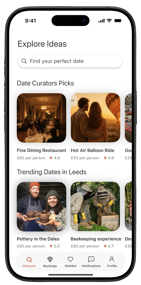 Every week, we’ll drop a fresh line-up of curated date experiences straight into your app all hand-picked by real locals (our “Date Curators”) who know the city inside out. They make sure you’ll never run out of things to do again.